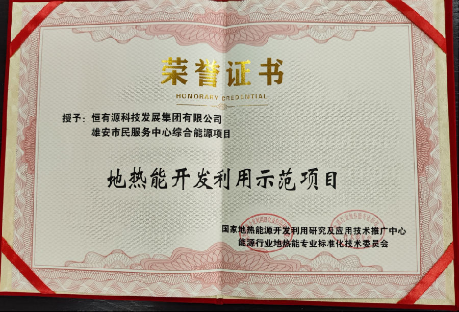 在评选中活动中,AG贵宾厅集团“雄安市民服务中心综合能源项目”荣获地热能开发利用示范项目称号。