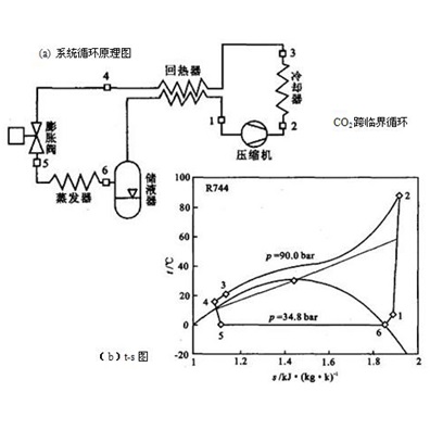 CO2热泵就是采用CO2作为制冷剂的热泵或空调,普通热泵一般采用氟利昂作为制冷剂,两者的工作原理基本是一样的,都属于蒸汽压缩式,但也稍有不同,CO2热泵属于超临界循环,即在冷凝器端,CO2是不会被冷凝成液体的,而氟利昂冷媒在冷凝器端是被冷凝成液体再节流的。